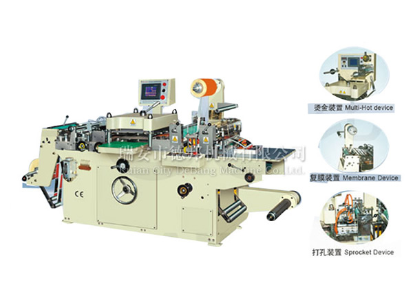 該機(jī)以平壓平高精度模切,拖料及切片由伺服電腦控制,印刷標(biāo)兩面三刀邊及縱向由三只光電眼精確跟蹤定位,模切、收廢、切片或自動貼標(biāo)機(jī)用的卷筒收卷一次完成。非常適用于紙張不干膠商標(biāo)、絳綸薄膜商標(biāo)及鐳射偽商標(biāo)的模切。該機(jī)是全輪轉(zhuǎn)高速卷筒商標(biāo)印刷機(jī)、柔性版印刷機(jī)、連續(xù)絲印機(jī)、凹版印刷機(jī)及防偽商標(biāo)模壓機(jī)配套設(shè)備,是各商標(biāo)印刷廠配套高效率的機(jī)型。還適用于電子行業(yè)、膠粘帶制品行業(yè)模切成型設(shè)備。