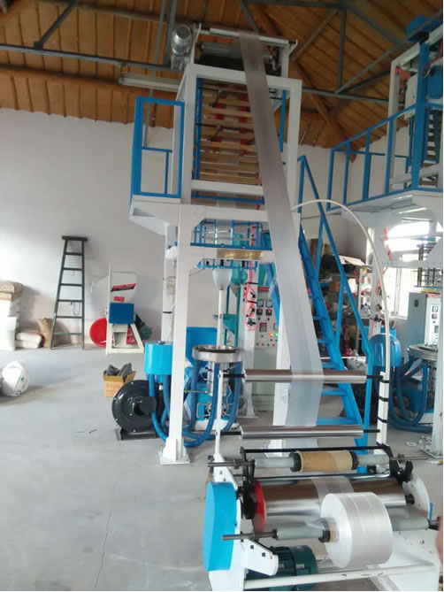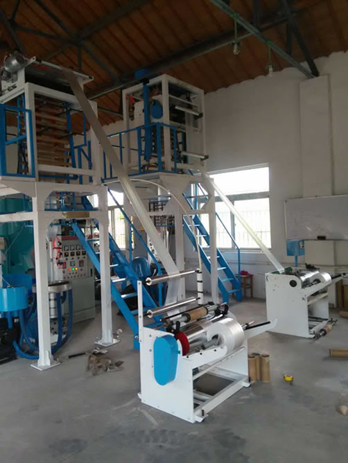 Low-pressure special film blowing machine Applicable raw material HDPE recycled materials for the production of vest bags, garbage bags, low-pressure packaging film, agricultural film and other products. Advantages Increased output and more stable quality.