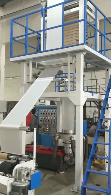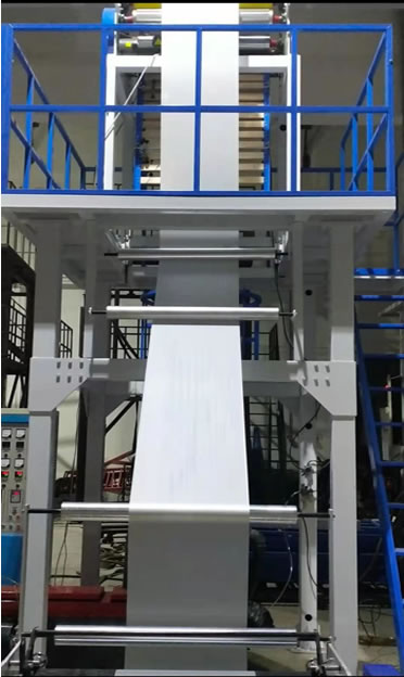 Degradable material blowing film machine Applicable raw materials such as PLA, PBAT, corn starch, calcium carbonate, bio-based and other degradable materials. Used in the production of vest bags, garbage bags. Advantages Fully degradable, degradable, and pollution-free.